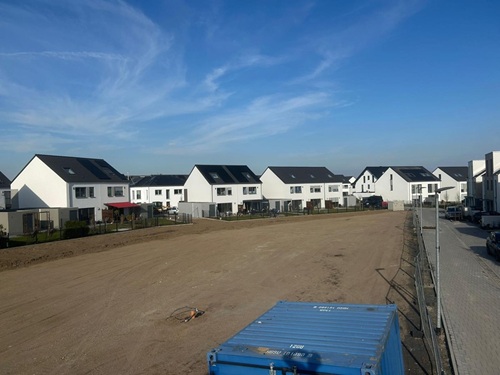 Der Spielplatz im Glessener Neubaugebiet an der Elisabeth-Schwarzhaupt-Straße wird großzügig erweitert. Fast 3000 qm Spiel- und Freizeitfläche sollen hinzu kommen. Die Planungen sind soweit fertig, die Umsetzung hat der Bauträger DORNIEDEN mit der Stadt Bergheim abgestimmt. Jetzt wurde die Erweiterungsfläche vorbereitet und die Sperrung der Fußwegeverbindung zwischen Mildred-Scheel-Straße und Elly-Heuss-Straße wieder geöffnet. DORNIEDEN plant, spätestens im August 2026 mit den Baumaßnahmen zu beginnen.   Foto: Dornieden
